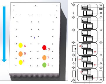 圖5:散熱器開(kāi)孔(左)以及對(duì)應(yīng)IGBT芯片布局圖(右)